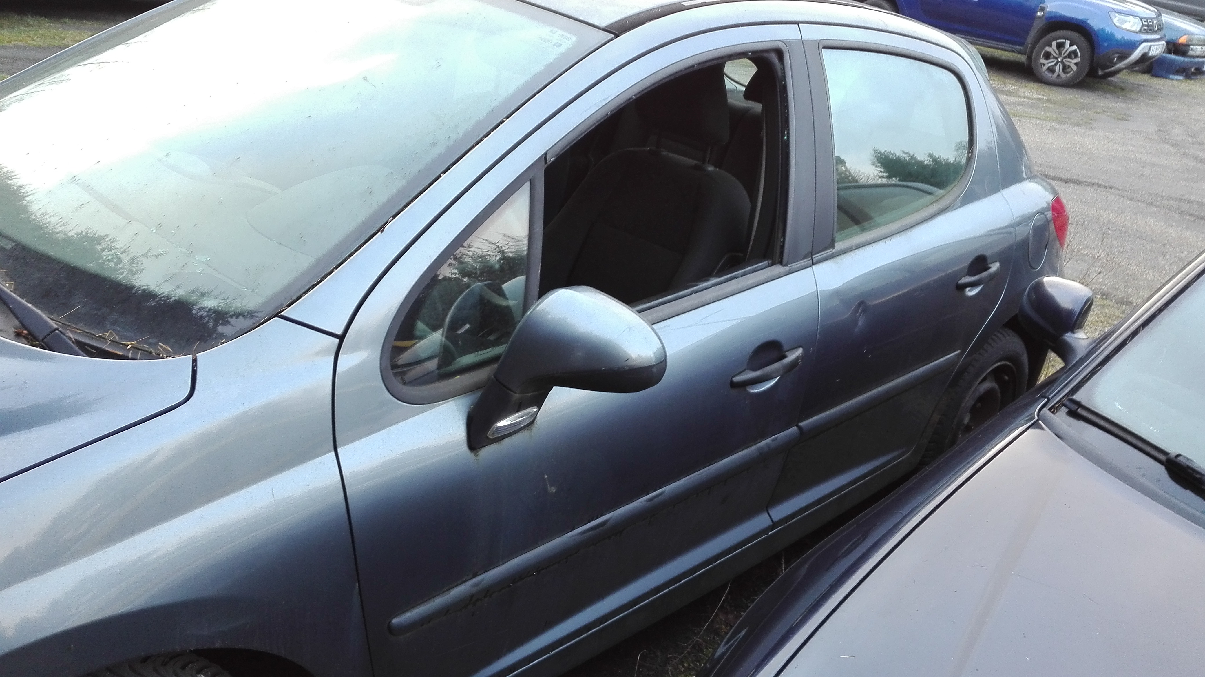 Wybita boczna szyba od strony kierowcy,  brak dokumentów, brak kluczyków, brak aktualnego przeglądu, ubezpieczenie OC ważne do 07.12.2026 r., wymagana laweta do transportu