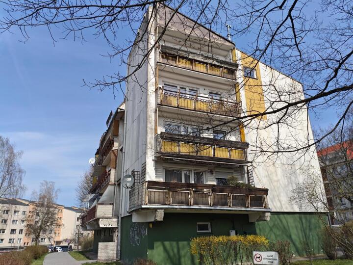 Lokal znajduje się na 2 kondygnacji w budynku wielorodzinnym, trzyklatkowym, pięciokondygnacyjnym wybudowanym w 1981 r. w technologii wielkopłytowej, przed termomodernizacją. Lokal ten o powierzchni użytkowej 73,29 m2 składa się z 3 pokoi, kuchni, łazienki, wc i przedpokoju, a także posiada naświetlenie trójstronne i balkon. Instalacje wewnętrzne: elektryczna, wodociągowa (ciepła woda zewnętrzna), kanalizacyjna, gazowa (odcięta), centralnego ogrzewania (zewnętrzna, grzejniki w pomieszczeniach).